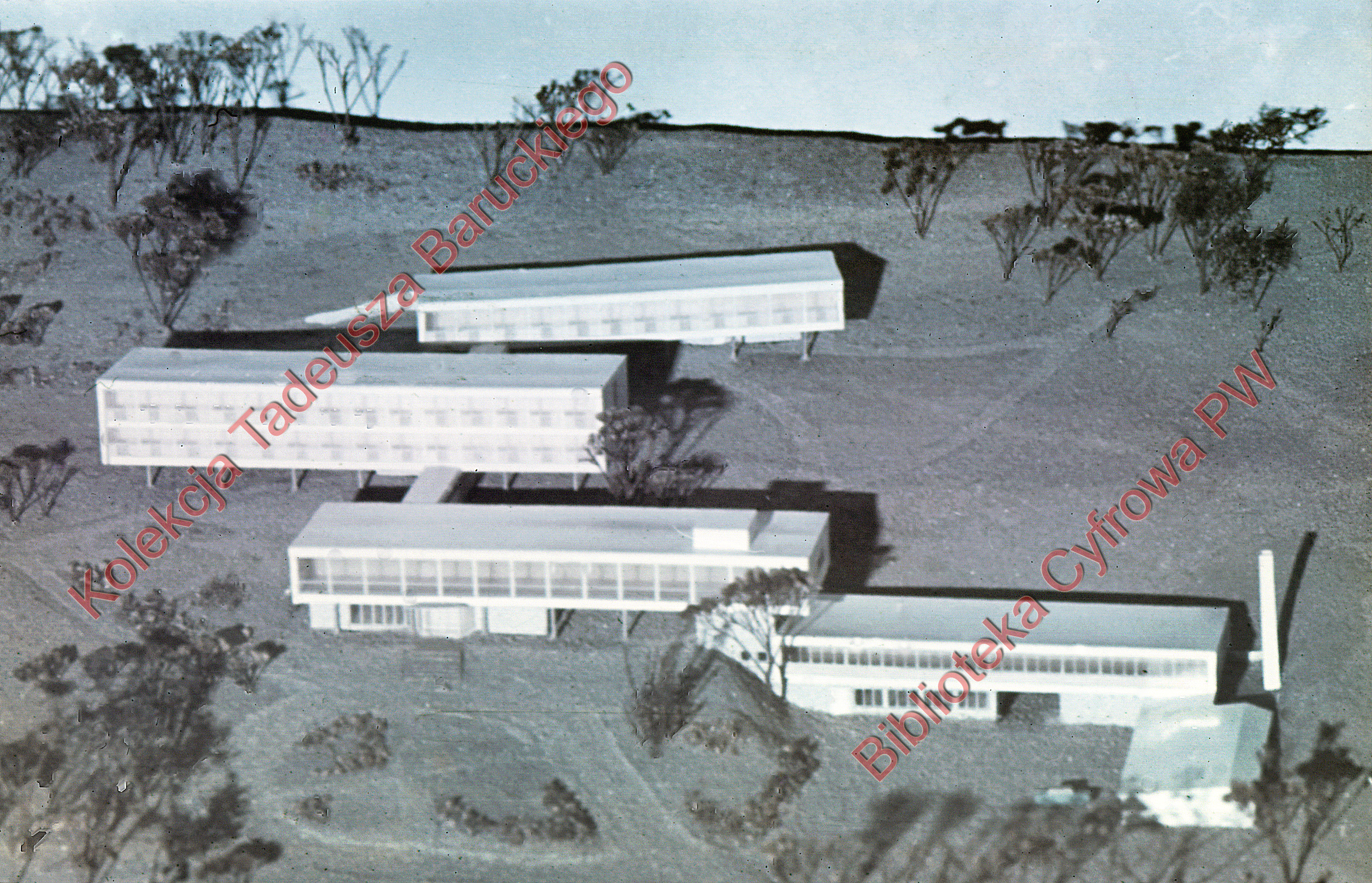 Title: Dom Turysty, makieta czterech budynków z widokiem dachu piątego budynku, Sandomierz