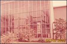 Title: Uniwersytet Zuryski, Wydział Fizyki, hala maszyn, fragment szklanej elewacji budynku, Zurych, Szwajcaria