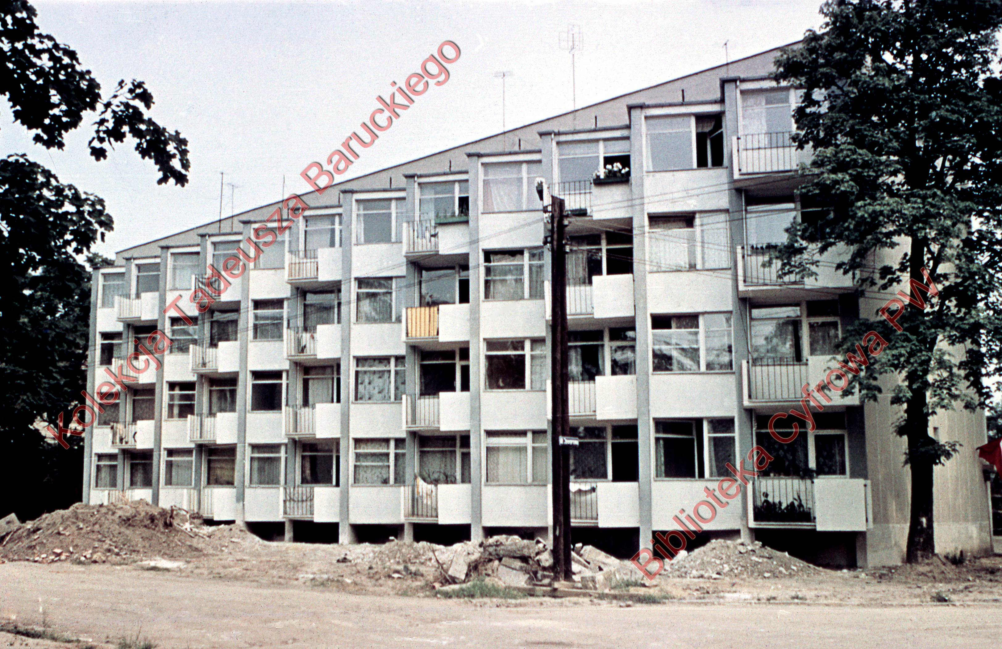 Title: Ulica Jaworowa 40-40b, blok mieszkalny o zębatej linii elewacji, widok zewnętrzny, Wrocław