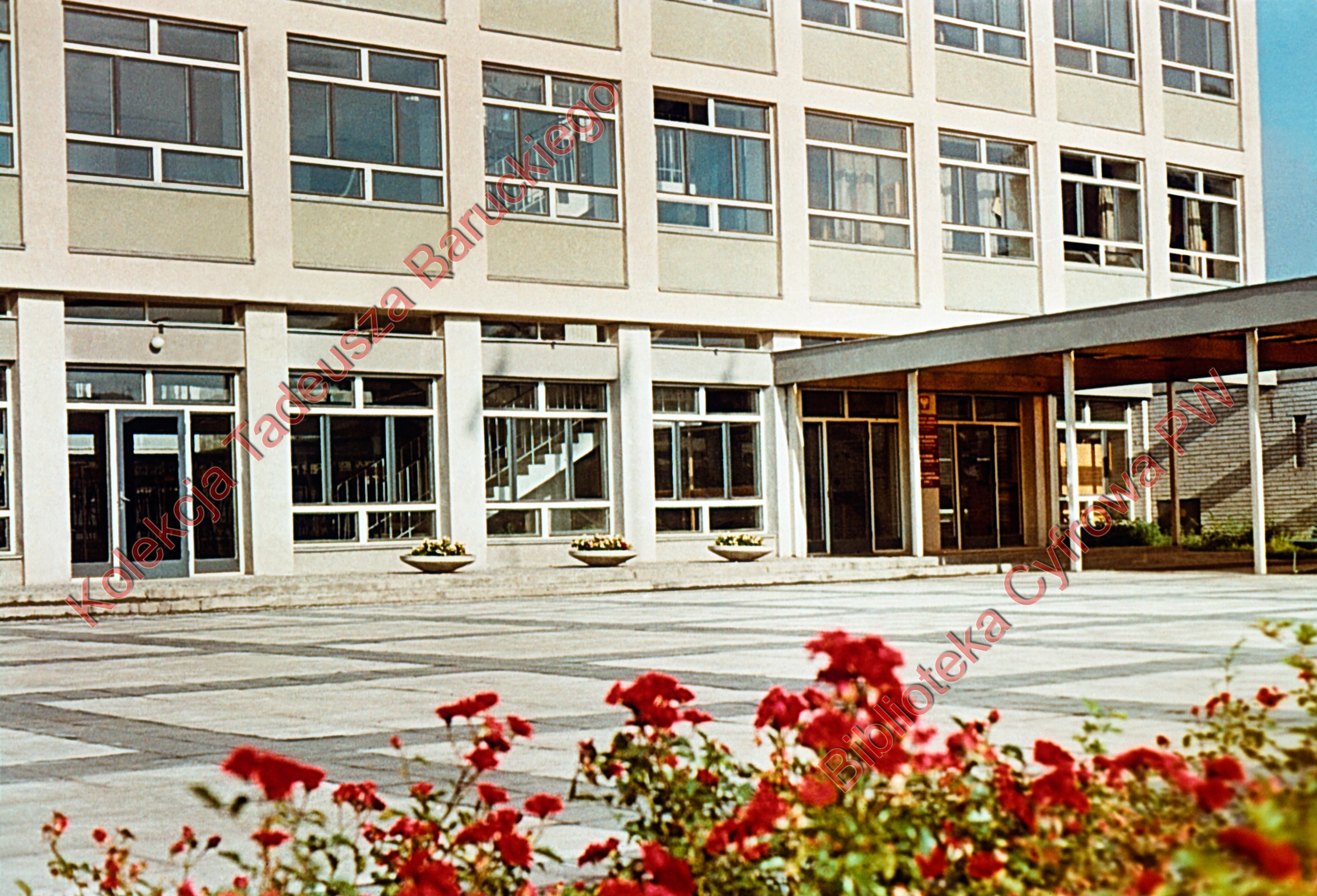 Dom Akademicki przy ulicy Żwirki i Wigury, widok zewnętrzny od strony zadaszonego wejścia, Warszawa