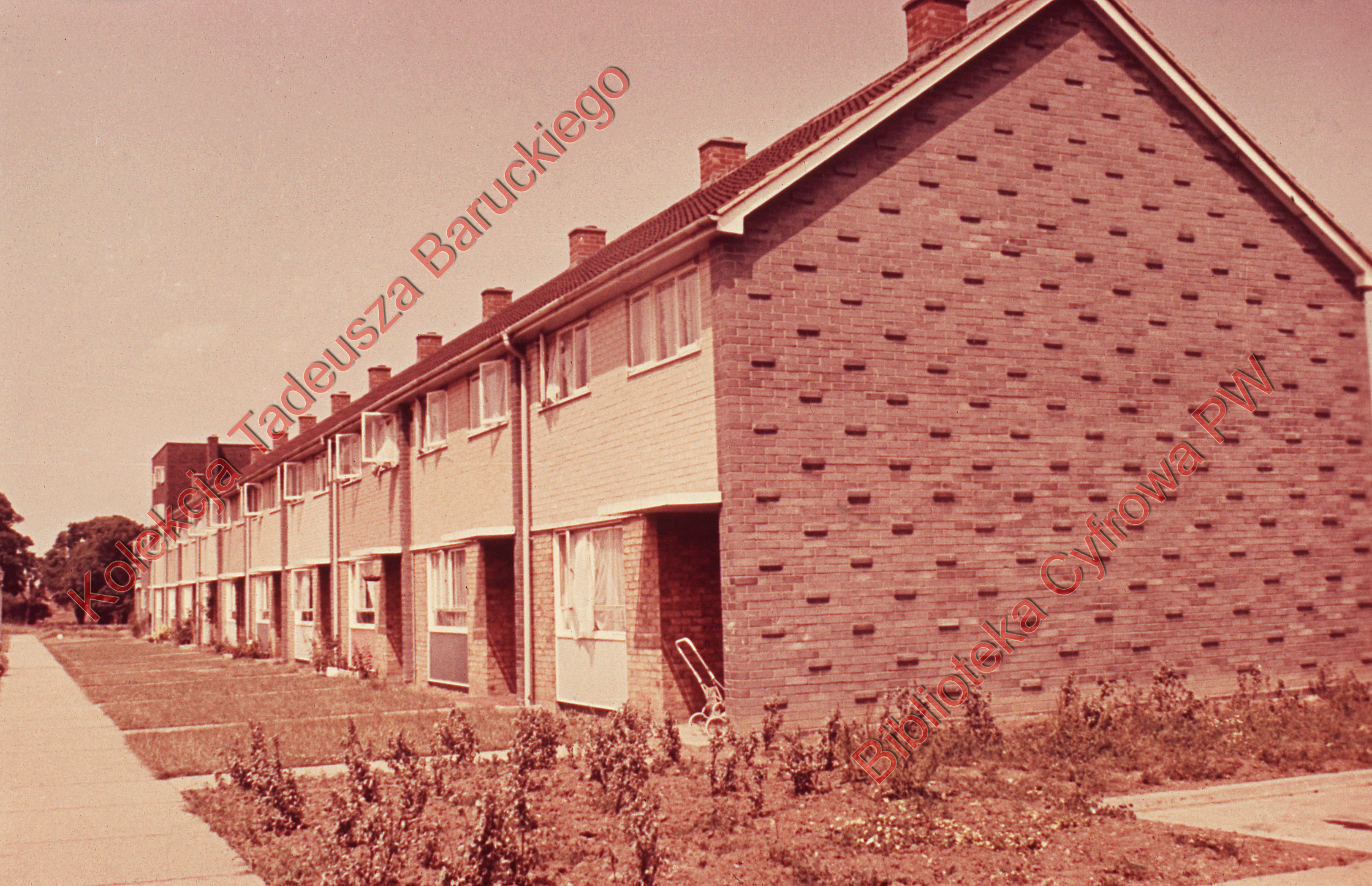 Opis:Widoczny także murek między budynkami.