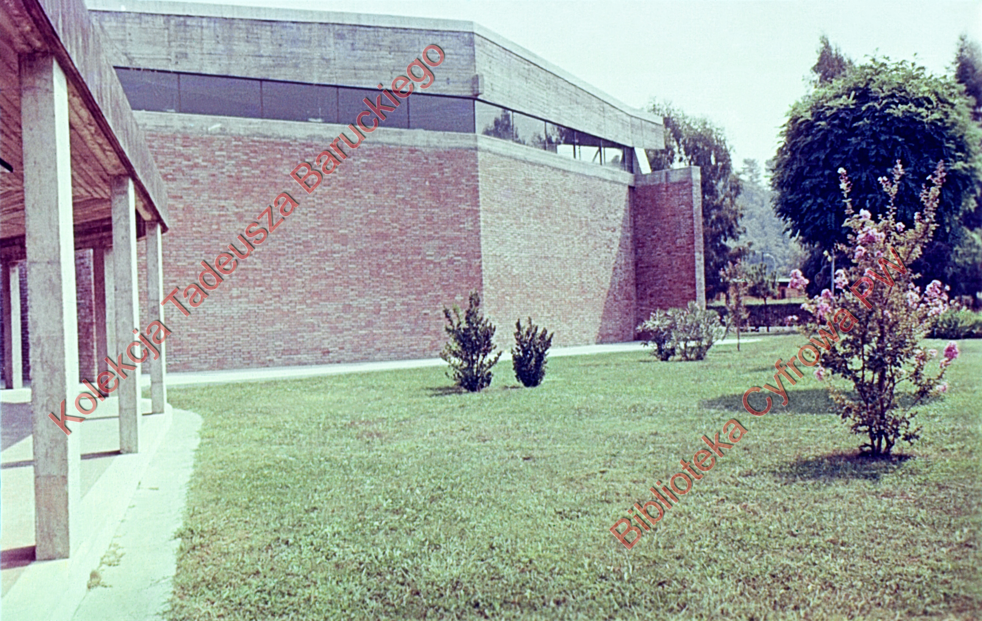 Tytuł: Ośrodek sportowy Acqua Acetosa, elewacja budynku hali treningowej oraz fragment pergoli, Rzym, Włochy