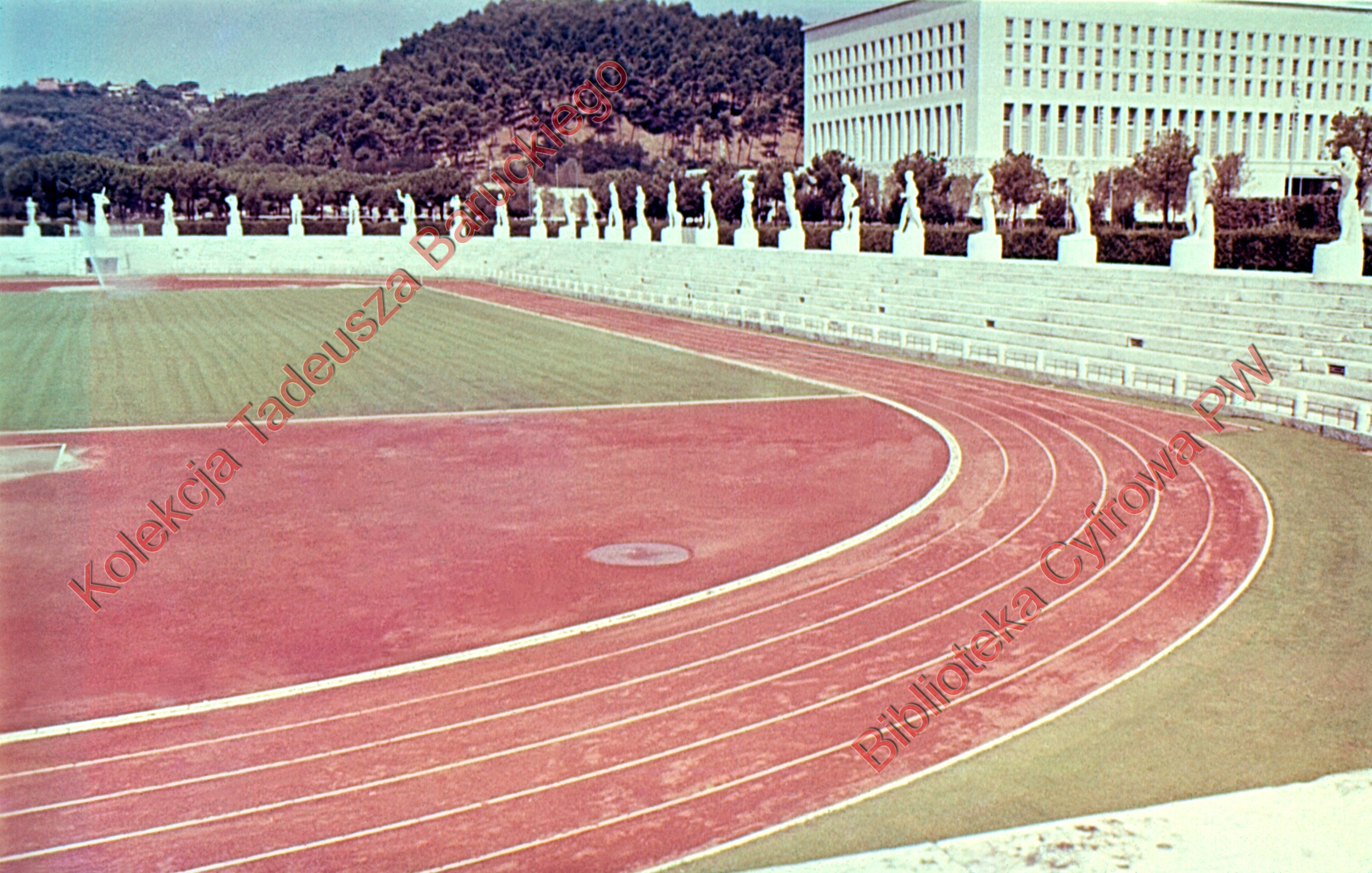 Opis:Bieżnia jest otoczona rzeźbami uosabiającymi różne dyscypliny sportowe.