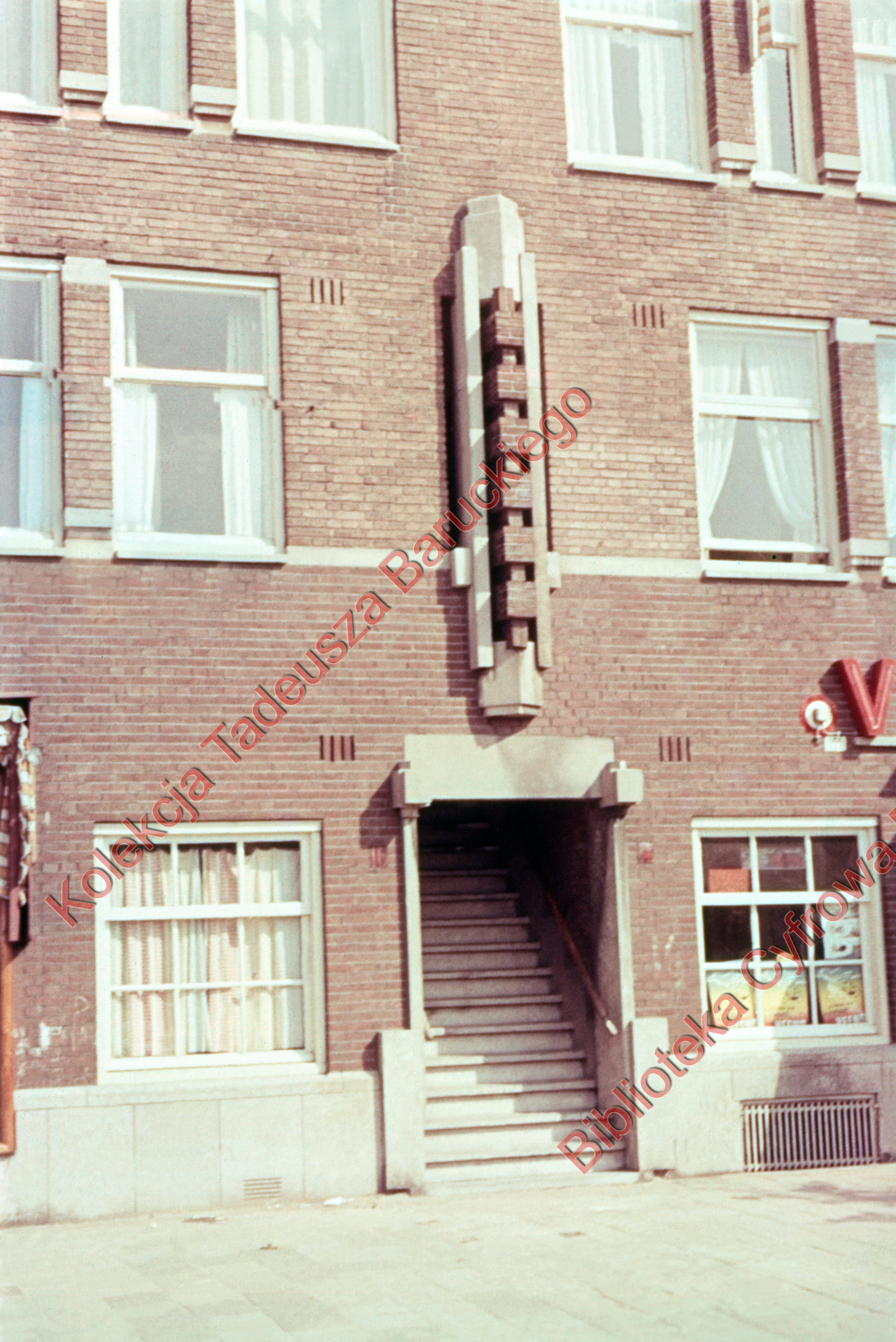 Tytuł: Fragment elewacji budynku mieszkalnego oraz schody wejsciowe, Amsterdam, Niderlandy
