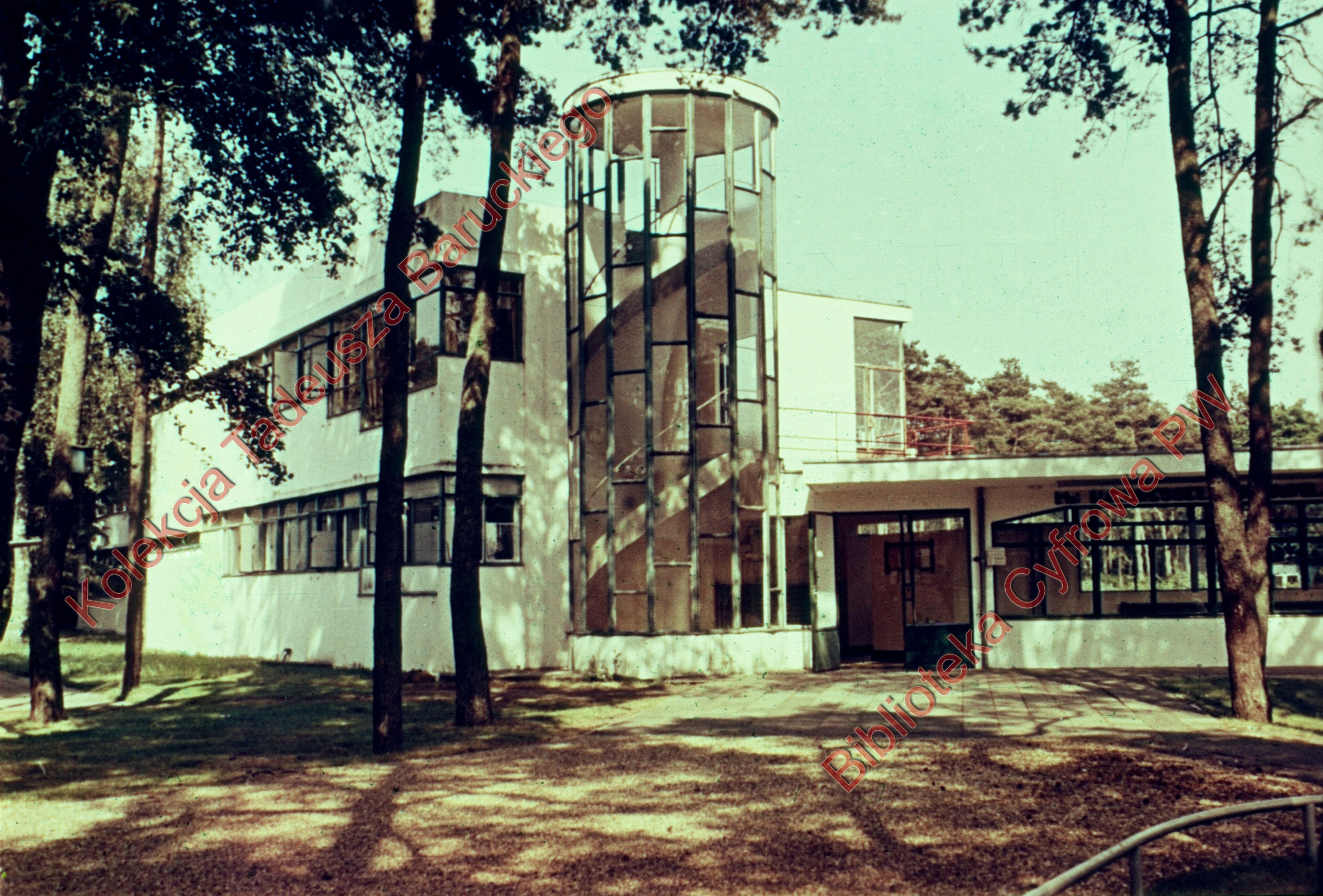 Sanatorium Zonnestraal, pawilon, widok naroża budynku z wejściem, Hilversum, Niderlandy