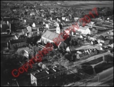 Title: Kościół pw. pw. Niepokalanego Poczęcia NMP i św. Wojciecha z fragmentem zabudowy miasta. Widok lotniczy od strony wschodniej. Nidzica
