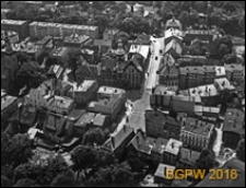 Title: Panorama fragmentu południowo-zachodniej części centrum z ratuszem i wieżą kościoła św. Piotra i Pawła, widok lotniczy od strony północnej, Kamienna Góra