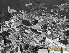 Tytuł: Panorama centrum z kościołem św. Michała Archanioła i rynkiem z kościołem Miłosiedzia Bożego, widok lotniczy od strony południowo-wschodniej, Sława Śląska