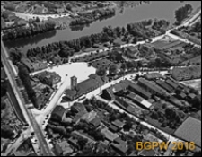 Tytuł: Panorama miasta z widokiem na Zalew Sulejowski i rynek z budynkiem Ochotniczej Straży Pożarnej, widok lotniczy od strony zachodniej, Sulejów