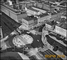 Tytuł: Panorama ronda de Gaulle'a z fragmentem zabudowy ulic Nowy Świat, Smolnej i Alei Jerozolimskich, widok lotniczy, Warszawa