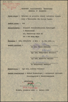 Title: Wytyczne do projektu stacji osłonowej ujęcia wody w Świniarsku dla Nowego Sącza