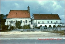 Tyt. nadany przez katalogującego. ; Diapozytyw barwny. ; Slajd barwny. ; Diap 15.399. ; Na zdjęciu widoczna dobudowana do budynku muzeum parterowa część z oknami w formie arkad w ścianie zewnętrznej zbudowanej na fundamentach dawnych murów obronnych.
