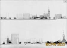 Dwa rysunki schematyczne elewacji budynków.