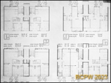 Rzuty mieszkań z wyznaczonym metrażem powierzchni mieszkaniowej i powierzchni użytkowej.