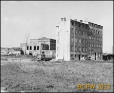 Nieużytki, budynek mieszkalny, w tle ruiny.