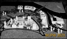 Makieta z budynkami i trasami komunikacyjnymi.