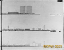 Title: Projekt urbanistyczny ośrodka usługowego na terenie Placu Społecznego we Wrocławiu - Konkurs SARP nr 363 : praca nr 8, wyróżnienie II stopnia. Zdj. 6, Przekroje