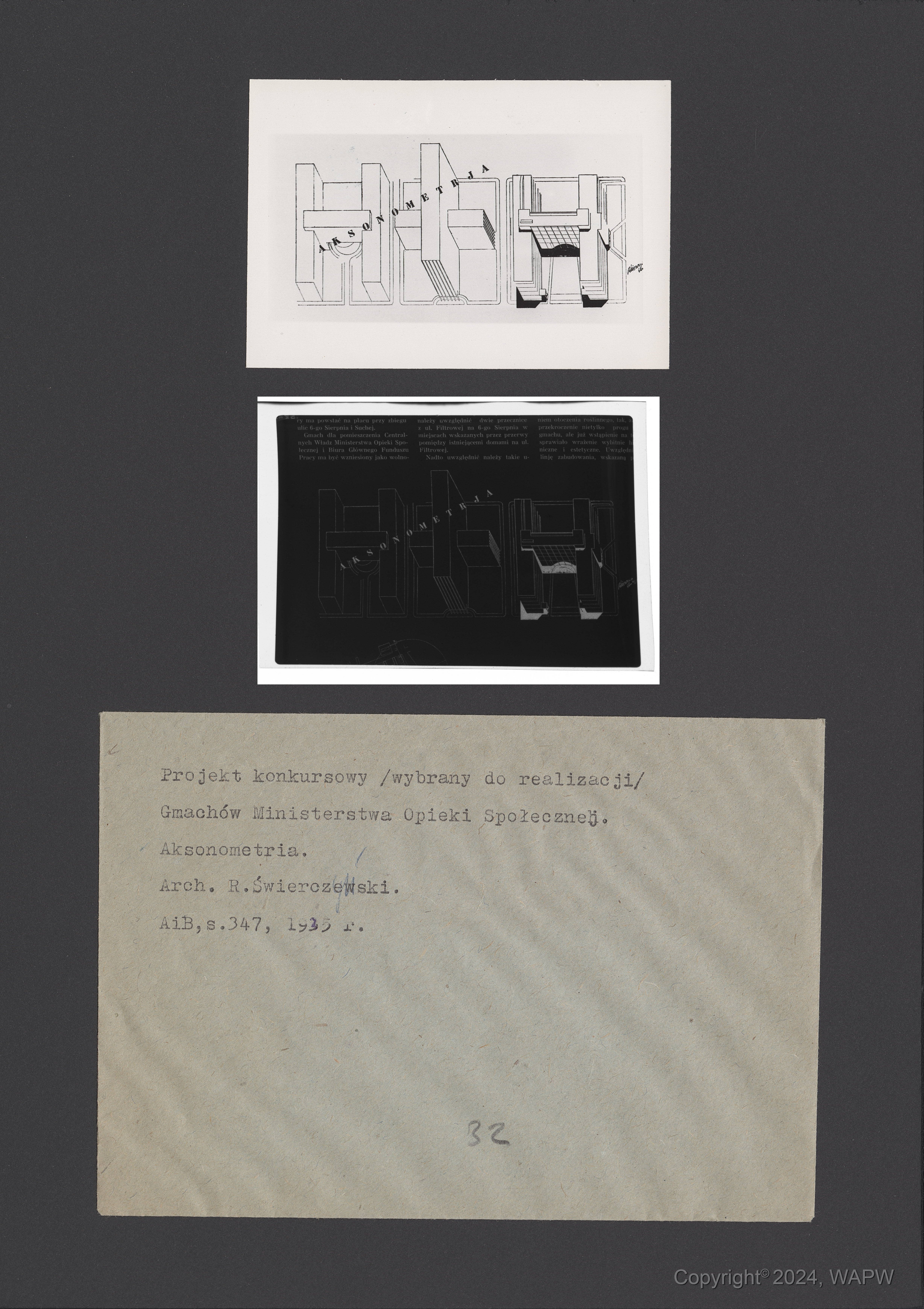 Na zdjęciu rysunek aksonometryczny ciągu budynków wysokościowych.