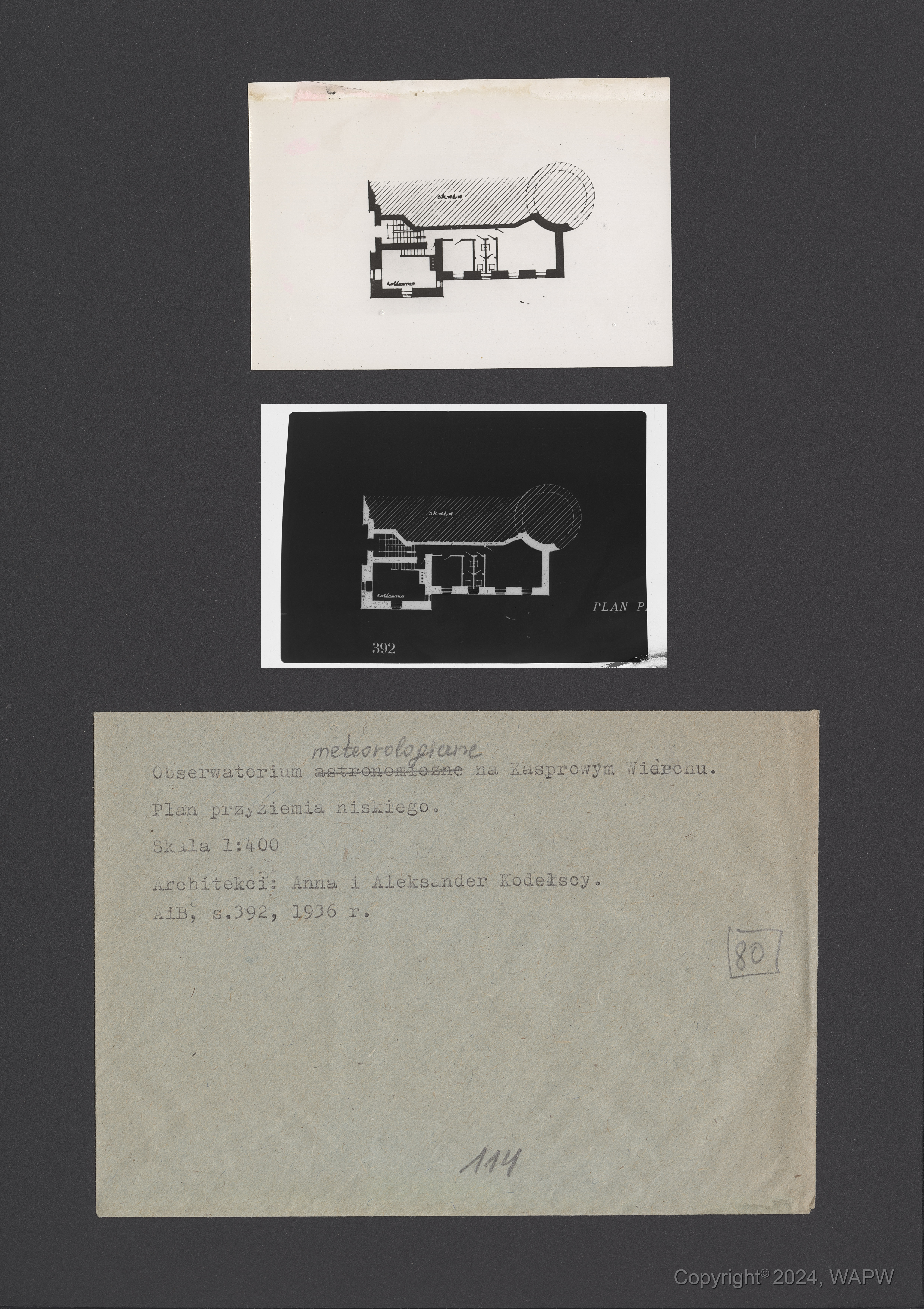 | 000348442 [Obserwatorium meteorologiczne na Kasprowym Wierchu, plan przyziemia niskiego] / | 18 lis 2024 |