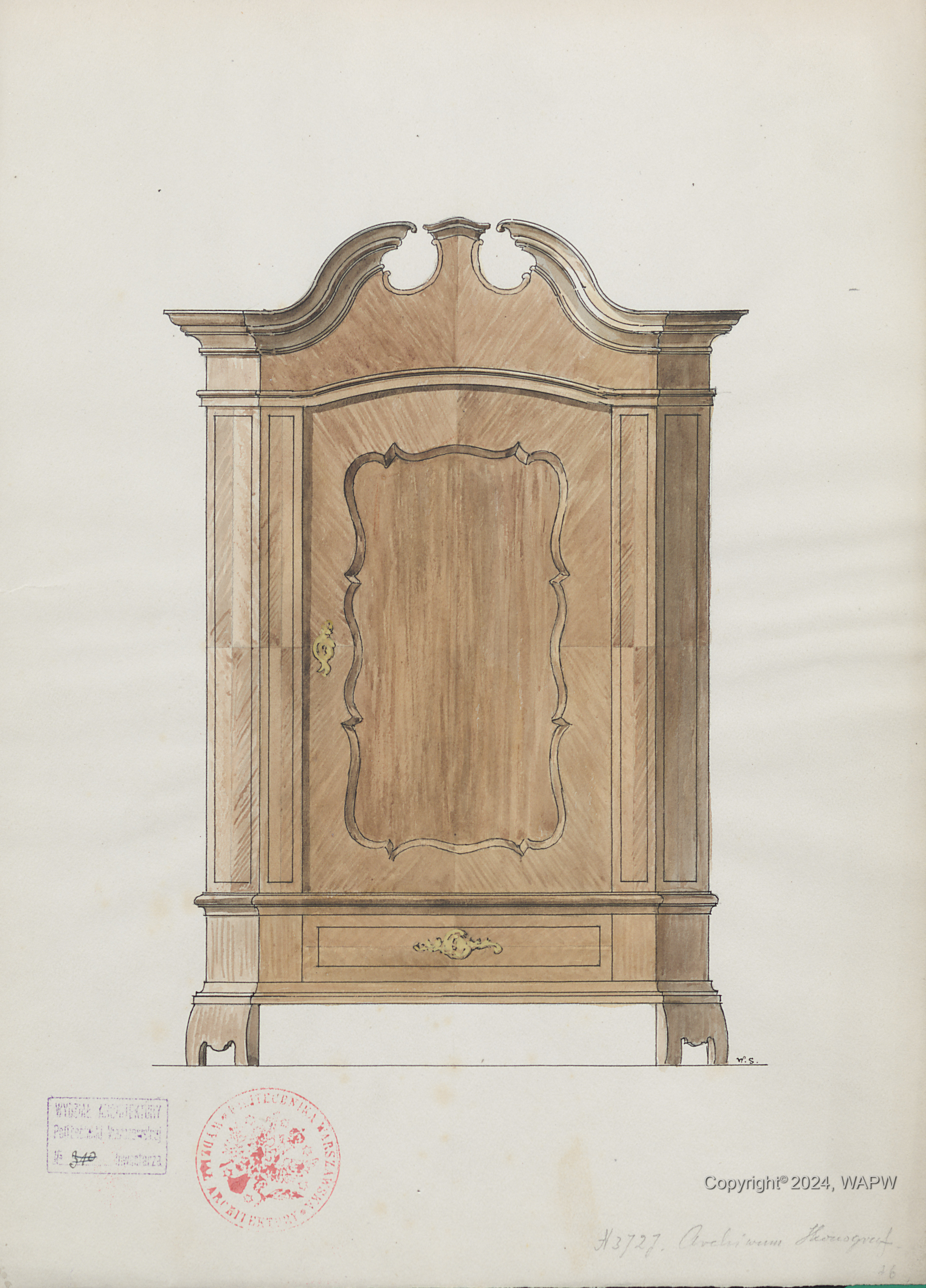 Jednodrzwiowa szafa z szufladą u dołu.