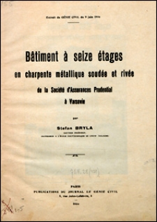 Title: Bâtiment à seize étages en charpente métallique soudée et rivée de la Société d’Assurances Prudential à Varsovie