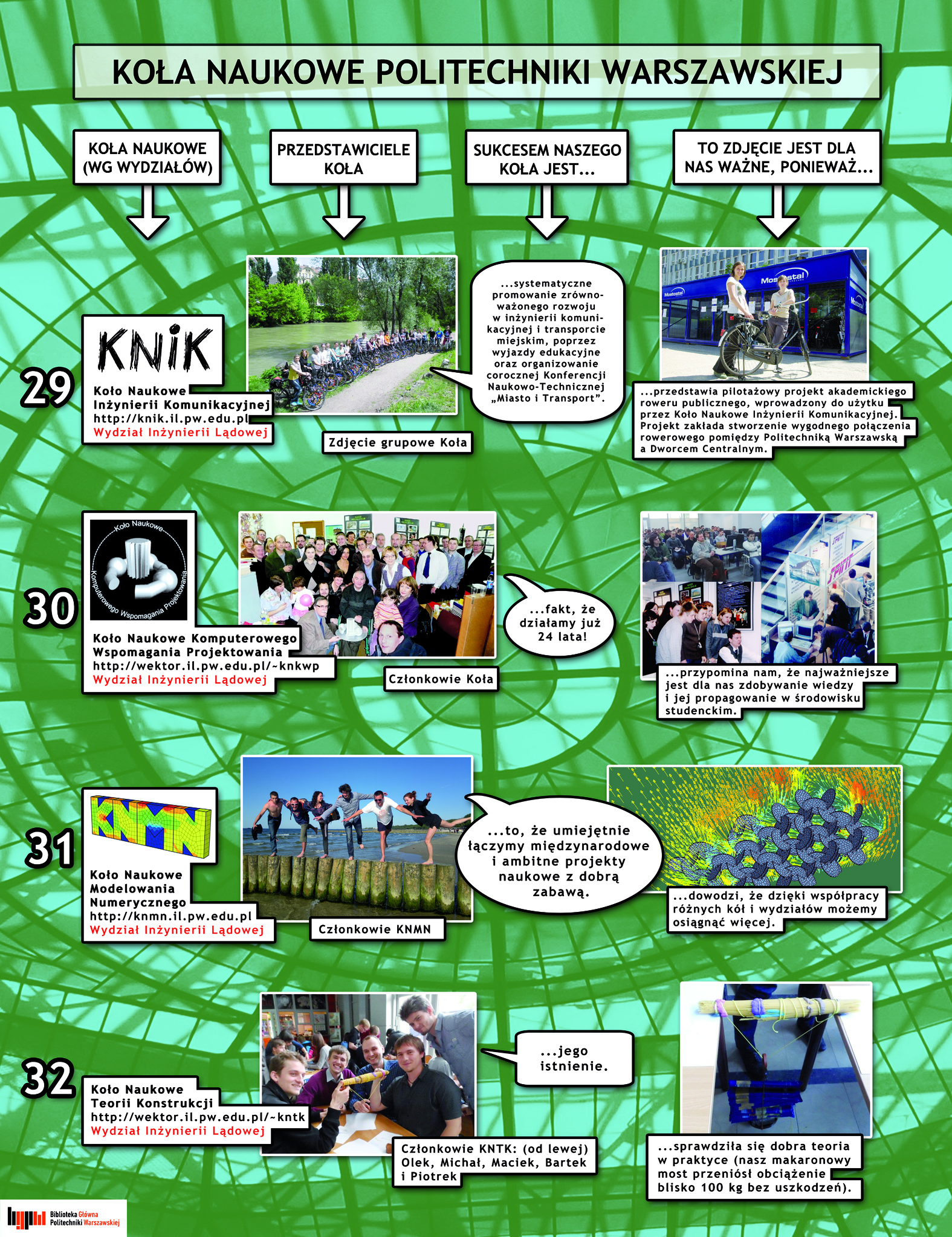 plakaty z wystawy "Koła NAukowe Politechniki Warszawskiej" 15-16 października 2013 w Gmachu PW ; fotografie i teksty przygotowali członkowie kół naukowych ; na planszach zaprezentowano osiągnięcia 60 kół naukowych działających na PW