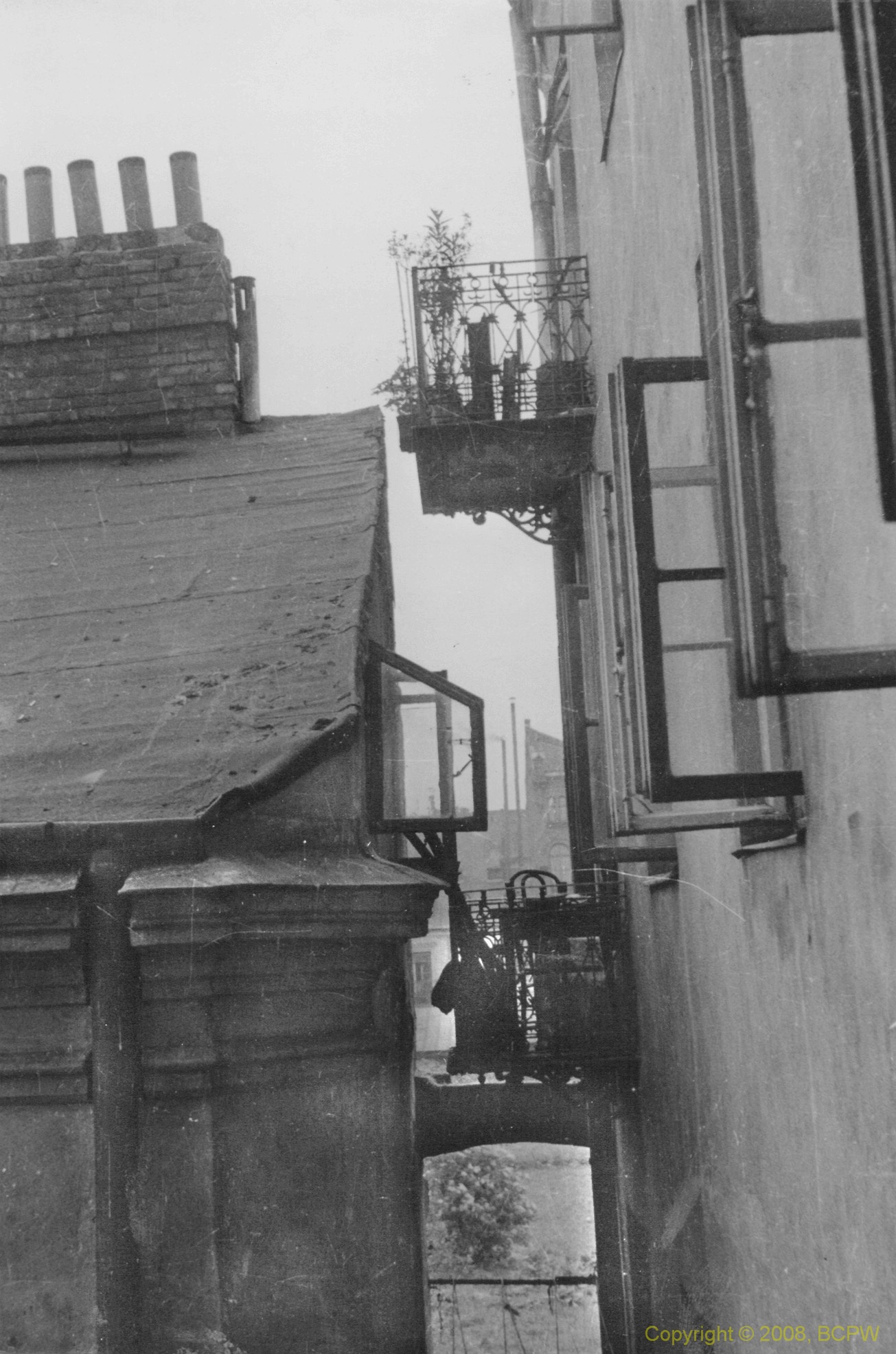 Stara zabudowa. Balkony i dachy domów. Warszawa