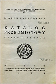 | Łysakowski, Adam, 1928, Katalog przedmiotowy. Cz. 1, Teorja | Nov 25, 2013 |