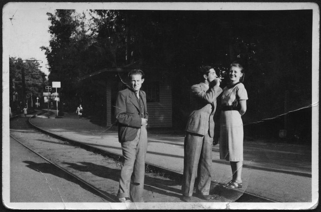 fotografia 3 osób na stacji Granica k. Milanówka
