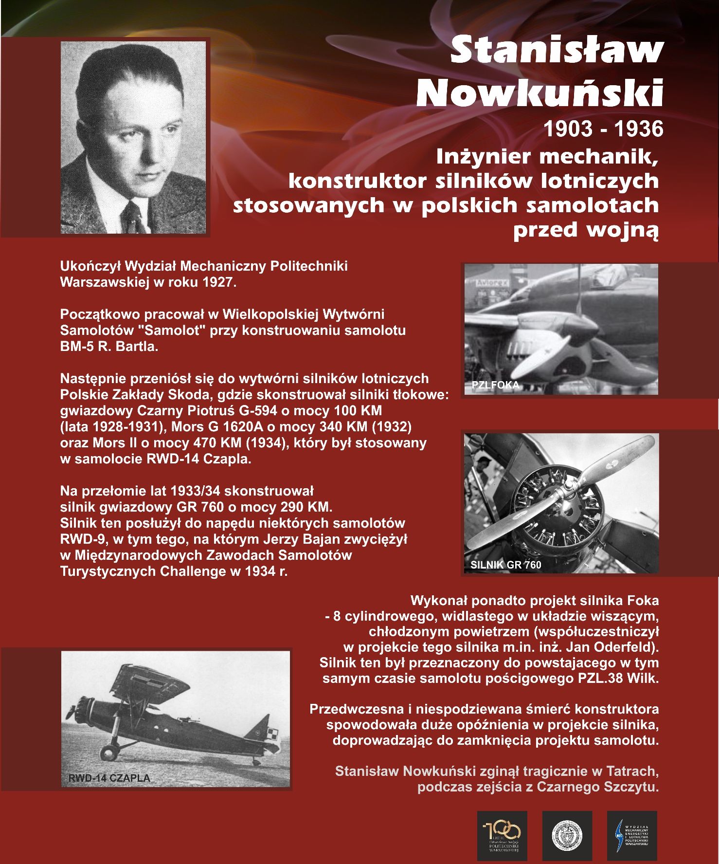 Subject and Keywords:historia Politechniki Warszawskiej ; konstrukcje lotnicze ; wystawy ; historia lotnictwa polskiego ; lotnicy ; konstruktorzy samolotów