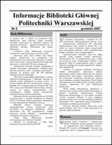 | 2007, Informacje Biblioteki Głównej Politechniki Warszawskiej 2007 nr 5 | Nov 7, 2016 |