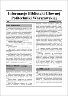 | 2009, Informacje Biblioteki Głównej Politechniki Warszawskiej 2009 nr 2 | Nov 7, 2016 |