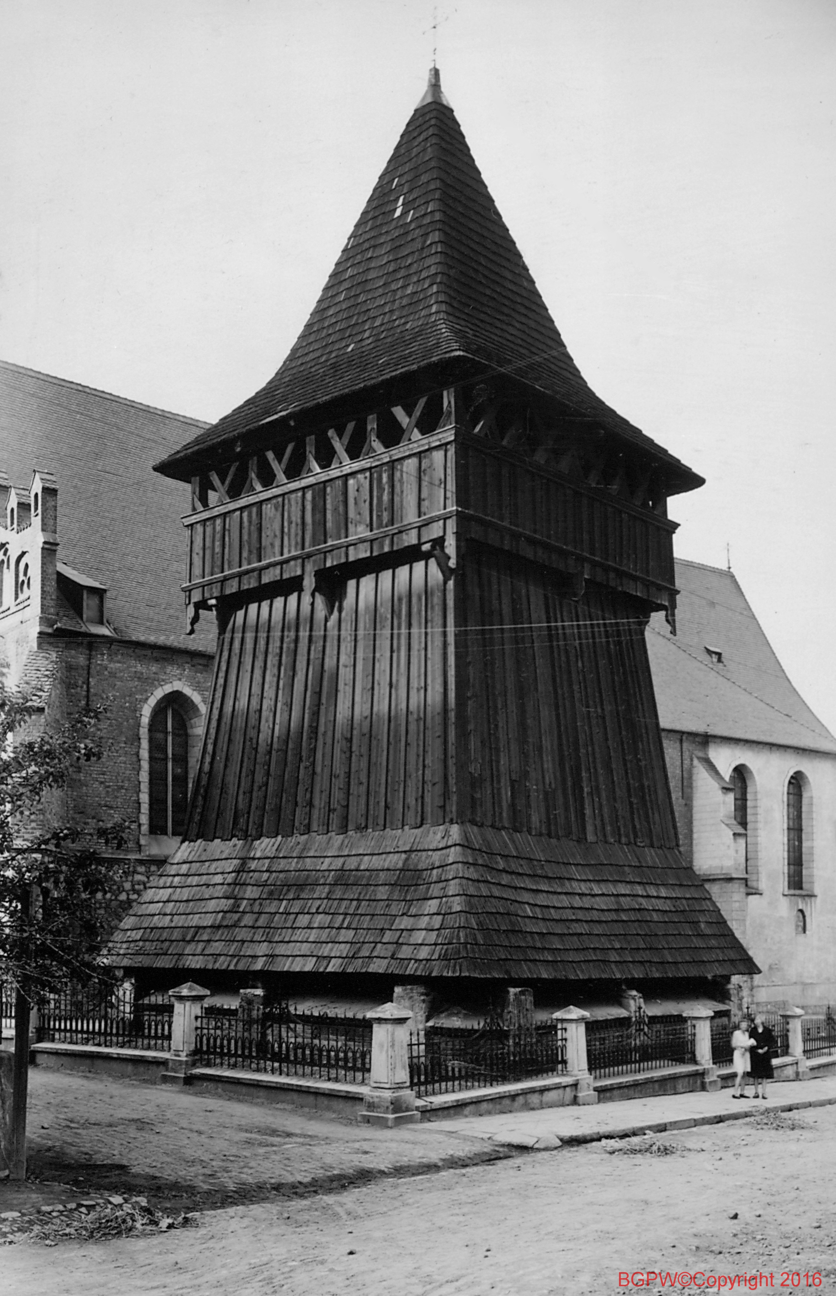 Dzwonnica drewniana przy kościele św. Mikołaja. Widok z 1933 roku. Bochnia