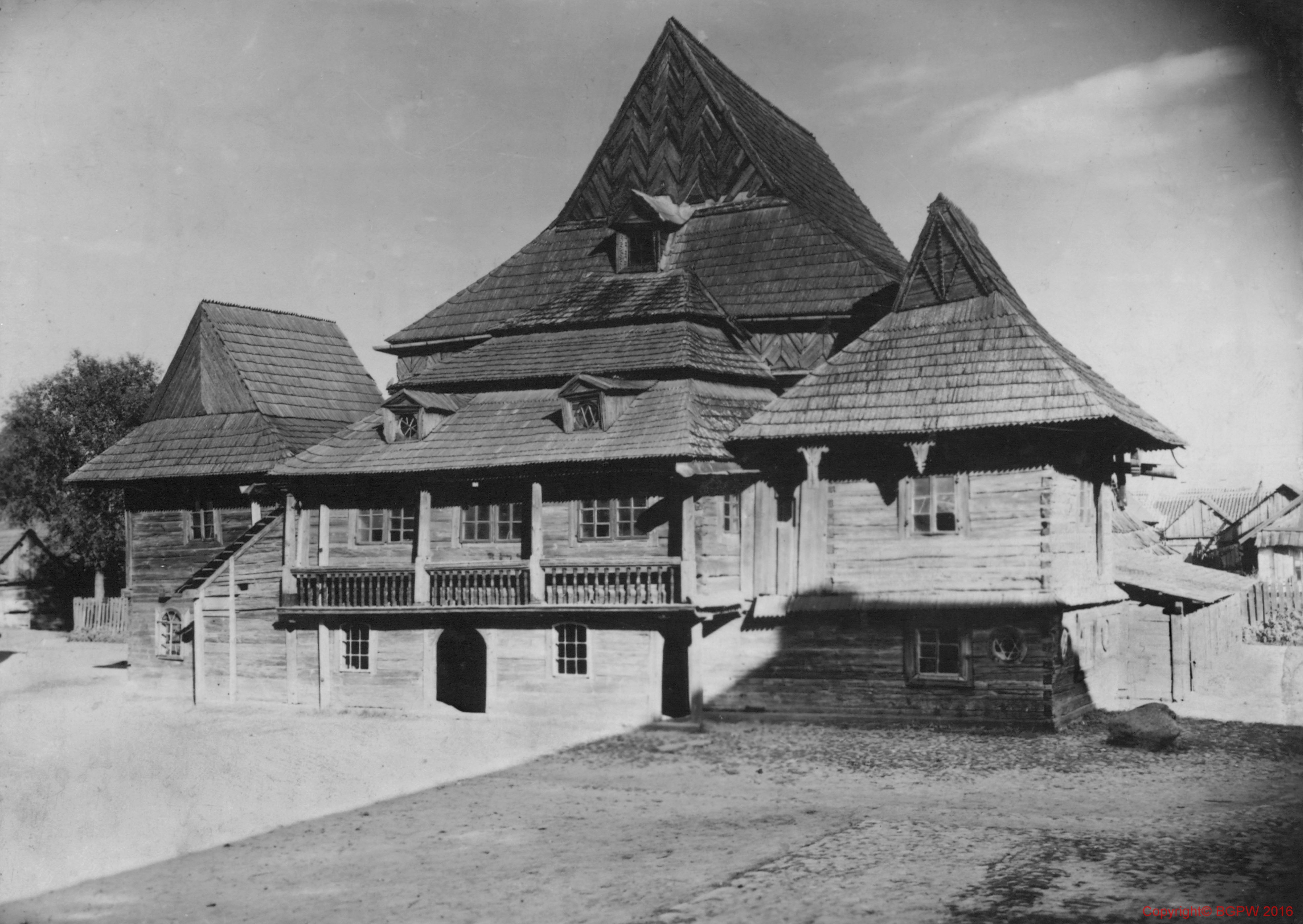 fot. czarno-biała ; Autor zdjęcia ustalony na podstawie książki M. i K. Piechotków "Bramy nieba. Bóżnice drewniane"