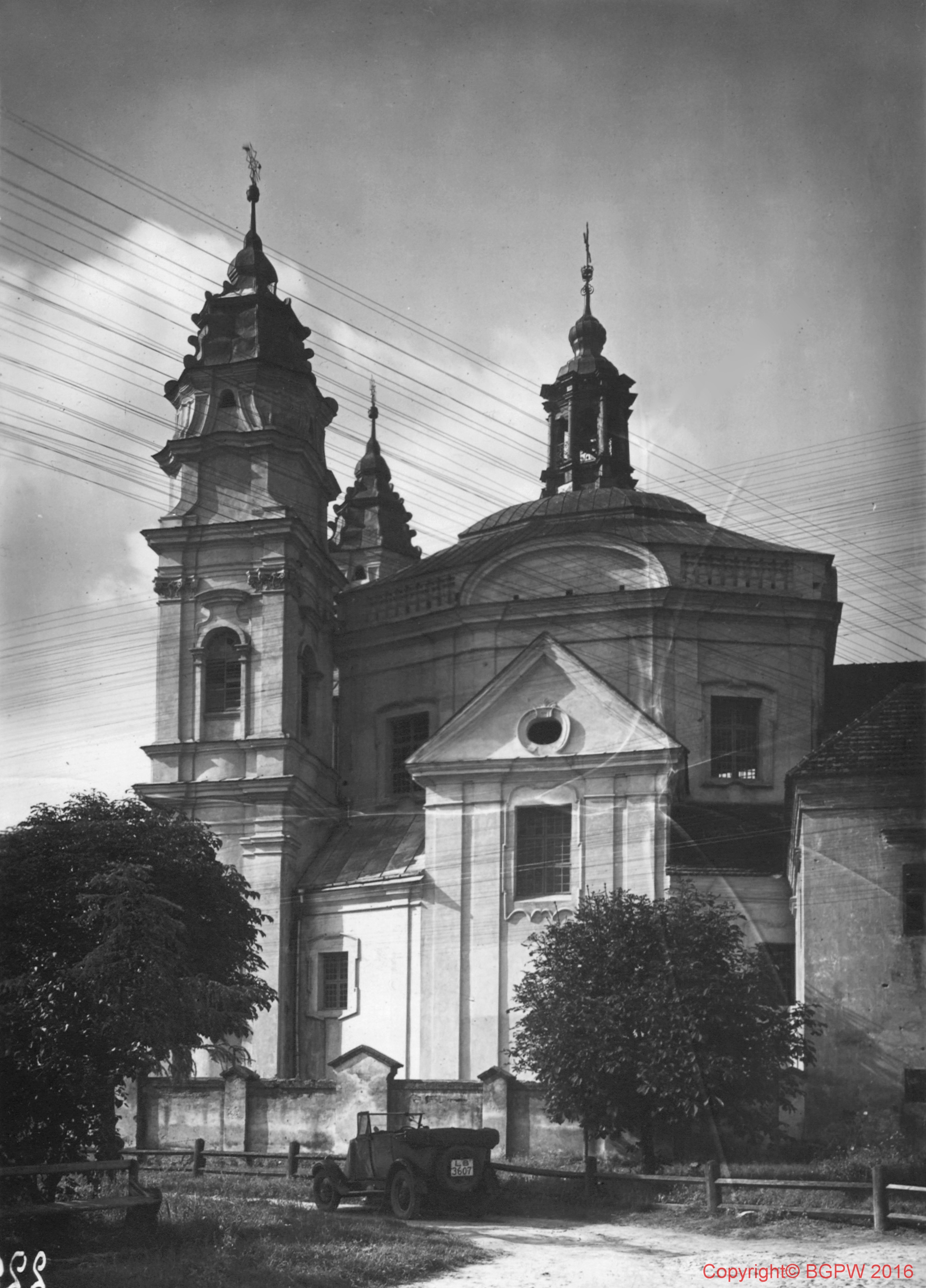 Kościół parafialny św. Ludwika. Widok od strony fasady bocznej z przed 1939 roku. Włodawa