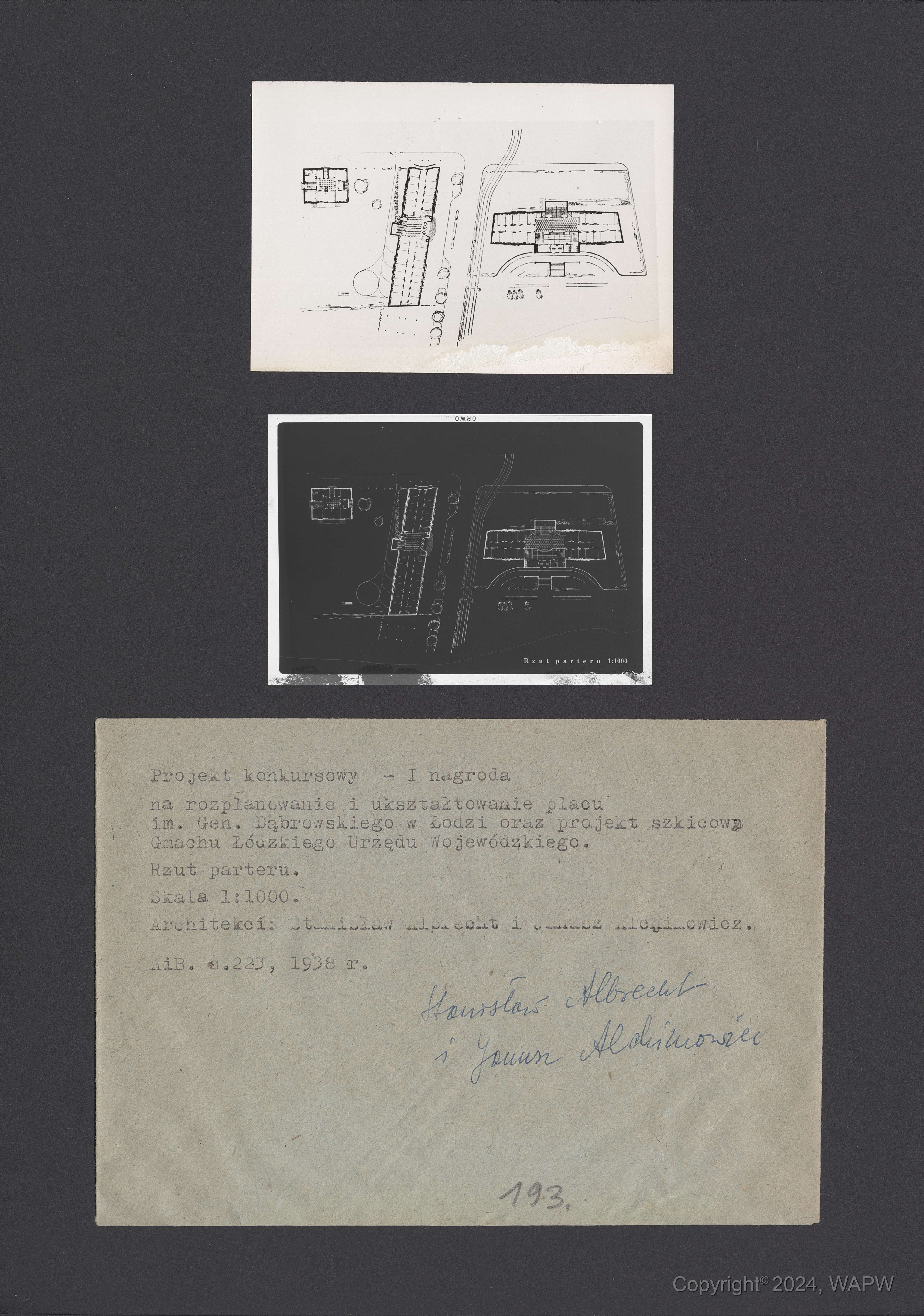 Title: Projekt na rozplanowanie i ukształtowanie Placu im. Generała Dąbrowskiego w Łodzi oraz projekt szkicowy gmachu Łódzkiego Urzędu Wojewódzkiego - Konkurs SARP nr 103 : praca nr 6, I nagroda. Zdj. 2, Rzut parteru